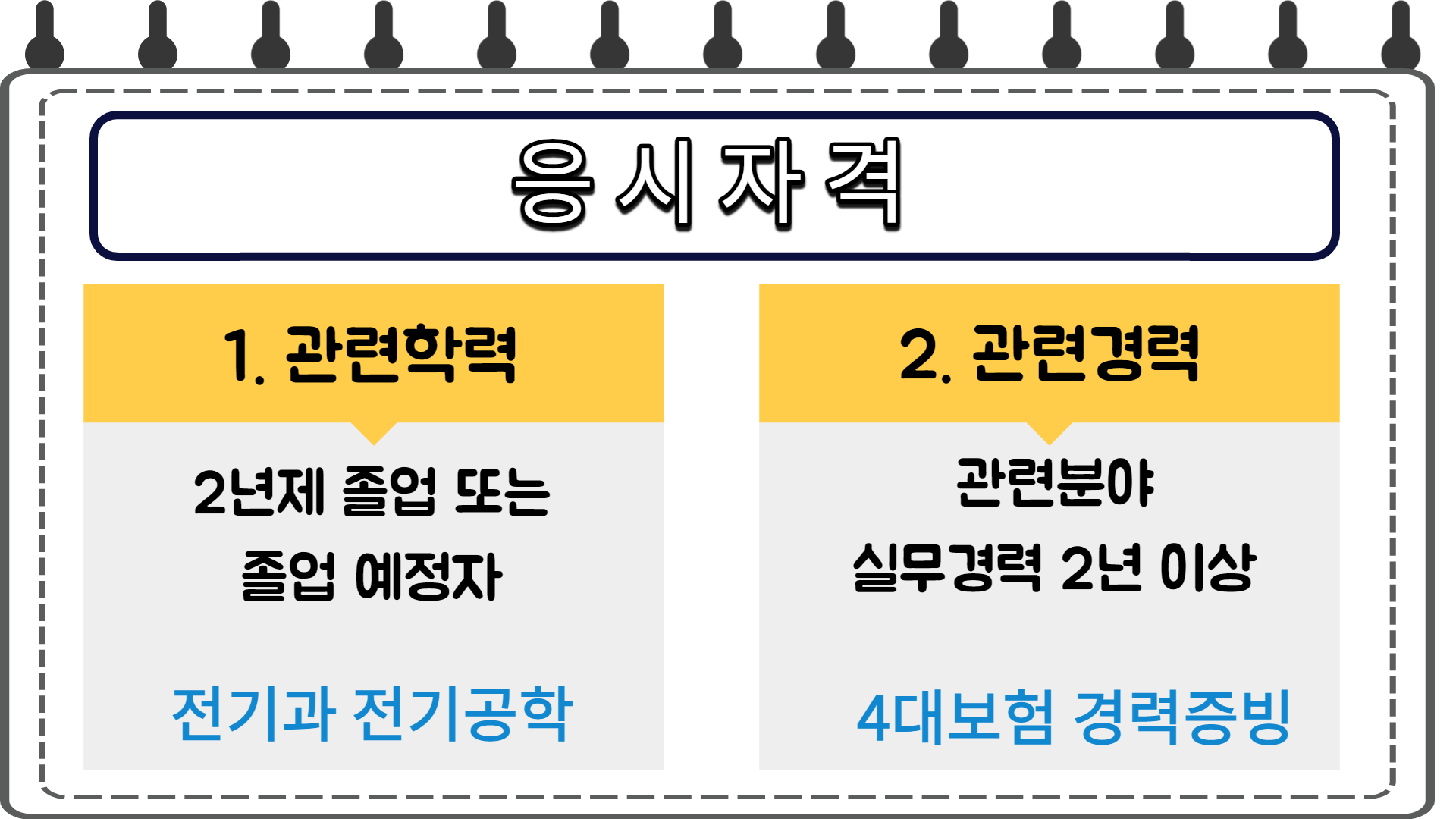 1) 전기 관련 전문학사 또는 학사 학위 소지